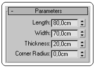 Objenin ölçüleri Parameters bölümünde düzenlenir (Şekil 1). 1. Length kısmına Y ekseni yönünde uzunluk değeri girilir. 2. Width kısmına X ekseni yönünde genişlik değeri girilir. 3. Thickness kısmına genişlik değeri girilir (Şekil 2). 4. Corner Radius kısmına girilen değere göre H şeklindeki objenin dip köşeleri aynı anda yuvarlatılır (Şekil 3). Şekil 1:Parametreler Şekil 2:H objesi Şekil 3:Yuvarlatmaları