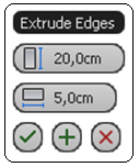 tıklanırsa Extrude Edges isminde değer kutuları ve komut düğmeleri (Caddy) görüntülenir (Şekil 4).