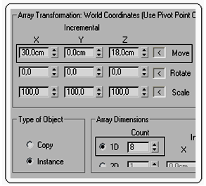 tıklanır ve X=30, Z=18, Count=8 değerleri girilir. Yön olarak 1D seçilir (Şekil 2). 4. OK düğmesine tıklanarak işlem tamamlanır (Şekil 3).