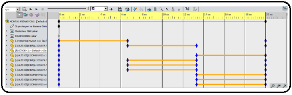 düğmesine tıklandığında anahtar kare düğmeleri görünür (Şekil 5). Aynı düğmeye tekrar tıklandığında kapanır. Burada her parçanın animasyon zaman aralığı görüntülenir.