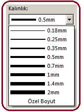 seçme işlemleri Çizgi Biçimi araç çubuğundan da yapılır (Şekil 7). Ayrıca çizgi rengini değiştirmek için