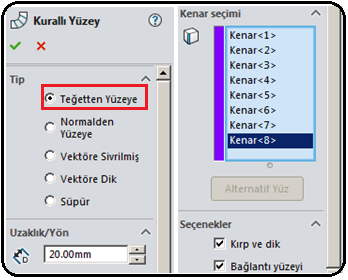düğmesine tıklanırsa yüzeyler diğer tarafa alınır. Uzaklık