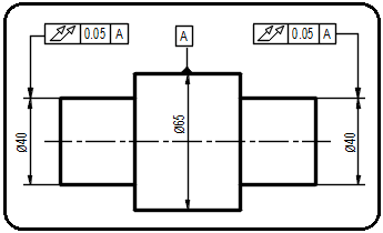 ): İş parçasının ölçme yapılan yüzeyinin tamamındaki yalpalama toleransıdır. Şekil 14’ de toplam yalpalama toleransı ve sapma değeri görülmektedir. Ortak eksenli üç silindirden çapı Ø40 olan silindirlerin yanal yüzeyleri döndürüldüğünde ölçüsü Ø65 olan referans (A) elamanına göre ölçümü yapılan yanal yüzeyin tamamında 0.05 mm sapma yapmasına müsaade edilmektedir.